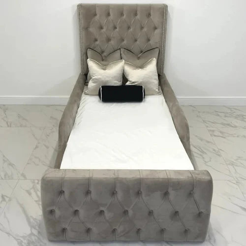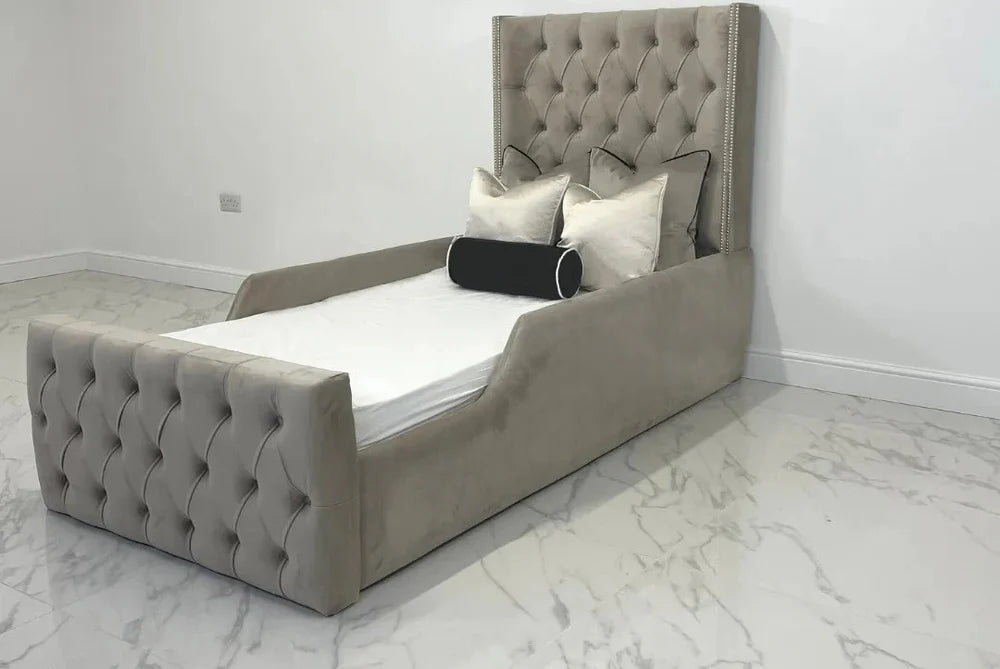 LunaCastle Upholstered Kids Bed – Turn bedtime into a fairytale with the LunaCastle bed. Wrapped in soft upholstery and crafted with elegant detailing, it offers royal comfort for your little one. Sturdy, stylish, and full of charm, it transforms any room into a dreamy kingdom where imagination and restful sleep reign.